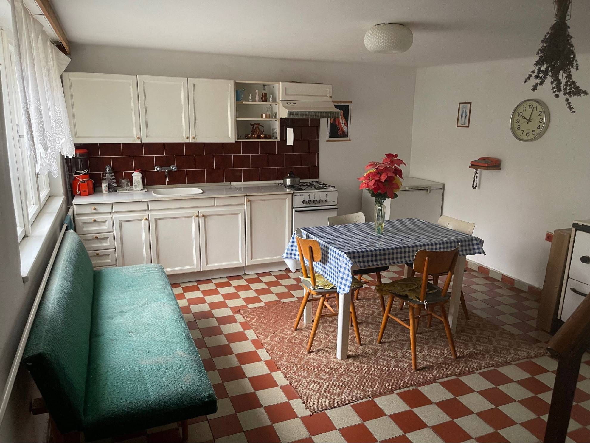 Na poschodí sa nachádzajú tri nepriechodne obytné izby, kuchyňa, kúpeľňa, toaleta.