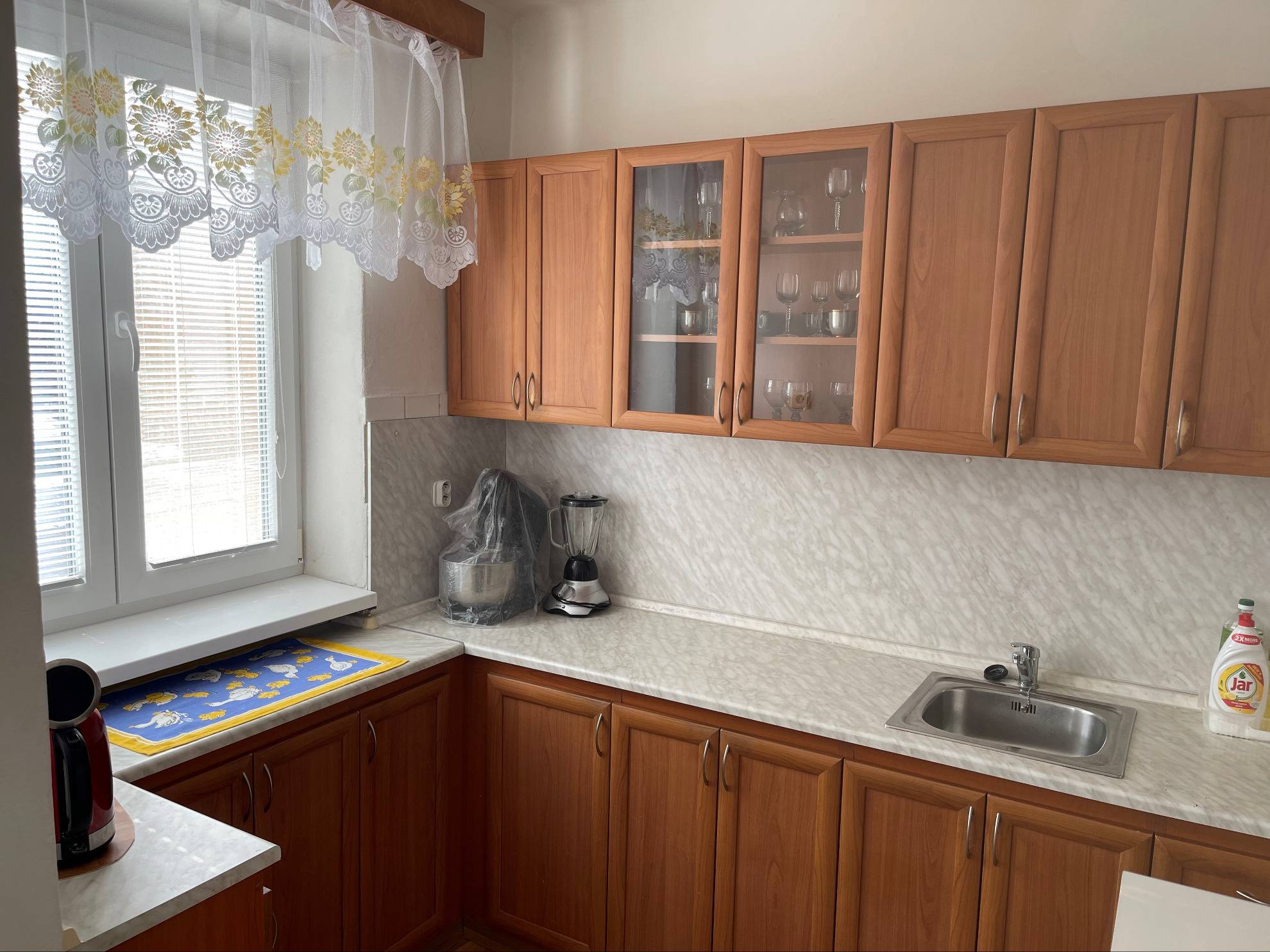 Teplú vodu a kúrenie zabezpečuje vlastný plynový kotol.